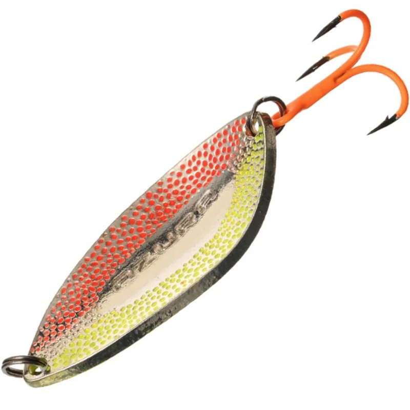 Azura Fortran – справжня гроза хижаків, яка вирізняється з-поміж інших класичною геометрією та високою уловистістю. Тіло приманки виготовлено з латуні та має багатошарове гальванічне покриття. Завдяки своїй формі Azura Fortran демонструє активну розмашисту гру навіть на невеликих швидкостях проведення. Це універсальна приманка, вона чудово тримає глибину проведення та вирізняється високою стабільністю гри. Прекрасно показує себе і на течії, і в стоячій воді. Блешню відмінно збалансовано, вона вирізняється хорошими аеродинамічними характеристиками, що дають змогу виконувати далекі й точні закидання. Спеціальне рифлення поверхні приманки у формі частих западин-мікрокрапок створює унікальний 3D-ефект об'ємного, рухливого і спокусливо мерехтливого тіла невеликої рибки, а також забезпечує мікрозавихрення та турбулентність водяного потоку навколо приманки, що особливо приваблює навіть малоактивного хижака. Блешню Fortran оснащено надійними заводними кільцями та гострими трійниками, здатними просікти пащу будь-якого трофея. Залежно від розмірів блешні Azura Fortran, крім всюдисущої щуки, у вашому улові будуть практично всі хижаки наших вод: форель, окунь, жерех, судак, сом тощо. Усі блешні виготовлені на високотехнологічному обладнанні, що дозволяє домогтися 100% повторюваності виробів, та пройшли ретельне тестування професійними експертами компанії Azura.