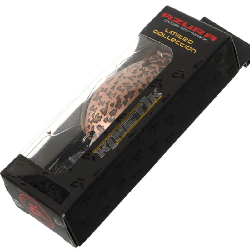Azura Kinetik Limited Collection – серія висококласних коливних блешень класичної форми, які виготовлено з латуні. Завдяки своїй формі блешня Azura Kinetik має доволі різку гру з високою частотою коливань навіть на малих швидкостях проведення. Вона не розрахована на ловлю на швидкій течії, але на невеликій течії та в стоячій воді демонструє феноменальні результати уловистості. Ця придонна приманка відмінно тримає глибину проведення і часто використовується для цілеспрямованого облову русла і прибережної зони рівнинних річок, а також ям на водосховищах і річкових затоках, де на великій глибині мешкає великий хижак. Унікальне рифлення поверхні приманки у вигляді мікрозападин створює не тільки візуальний 3D-ефект об'ємного рухливого тіла невеликої рибки, а й забезпечує мікрозавихрення і турбулентність водяного потоку, що разом із привабливими мерехтіннями та відблисками особливо приваблює хижака. Блешня Azura Kinetik Limited Collection має чудові аеродинамічні характеристики, що дають змогу виконувати далекі й точні закидання. Приманку оснащено надійними заводними кільцями та гострими трійниками, здатними просікти пащу будь-якого трофея. Залежно від розмірів блешні Azura Kinetik у вашому улові будуть і білі хижаки – жерех, головень, в'язь – і звичайні спінінгові трофеї, такі як форель, окунь, щука, судак і навіть сом. Усі блешні виготовлені на високотехнологічному обладнанні, що дозволяє домогтися 100% повторюваності виробів, та пройшли ретельне тестування професійними експертами компанії Azura.