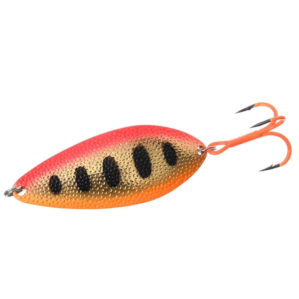Azura Fortran Flat – серія високоефективних коливних блешень, що виділяються з-поміж інших класичною геометрією та високою уловистістю. Від улюбленої багатьма серії Fortran приманки Fortran Flat відрізняються ширшим тілом і вираженим S-подібним вигином. Вони виготовлені з латуні, мають багатошарове гальванічне покриття. Завдяки своїй формі Azura Fortran Flat демонструють активну розмашисту гру навіть на невеликих швидкостях. Приманки відмінно тримають глибину проведення, мають високу стабільність гри та чудово показують себе як на течії, так і в стоячій воді. Коливні блешні Azura Fortran Flat добре збалансовані й вирізняються гарними аеродинамічними характеристиками, що дають змогу виконувати далекі й точні закидання. Спеціальне рифлення поверхні приманки у формі частих западин-мікрокрапок створює унікальний 3D-ефект об'ємного, рухливого та спокусливо мерехтливого тіла невеликої рибки, а також забезпечує мікрозавихрення та турбулентність водяного потоку навколо приманки, що привертає увагу навіть вкрай малоактивного хижака. Кожну блешню Fortran Flat оснащено надійними завідними кільцями та надзвичайно гострими трійниками, здатними просікти пащу будь-якого трофея. Залежно від розмірів блешні, крім усюдисущої щуки, у вашому улові будуть практично всі хижаки наших вод: форель, великий окунь, жерех, судак, сом тощо. Усі блешні виготовлені на високотехнологічному обладнанні, що дає змогу добитися 100% повторюваності виробів, і пройшли ретельне тестування професійними експертами компанії Azura.
