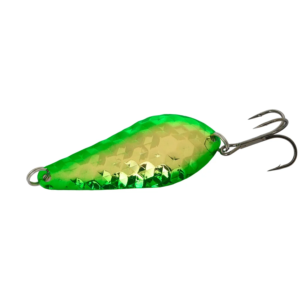 Flagman Atom Diamond 9,5 г 55 мм – універсальні коливні блешні, що довели свою неймовірну ефективність задовго до народження переважної більшості сучасних риболовів. Блешні Атом – це невмируща класика, що вражає своєю уловистістю любителів спінінгової ловлі чимало десятиліть поспіль. Приманки підсерії «D» мають унікальне рифлення поверхні типу Diamond, що створює не тільки «живі» мікрозавихрення водного потоку, але і створює безліч різноспрямованих відблисків, особливо привабливих для будь-якого хижака. Магічне поєднання унікального вигину, складної геометрії тіла із широкою задньою частиною і звуженим носом, звабливої вихляючої з боку в бік розгонистої гри та сміливих колірних рішень вивели цю улюблену багатьма приманку на сучасний рівень, вдихнувши в неї нове життя! Завдяки своїй універсальності блешня Flagman Atom чудово ловить хижака як у стоячих водоймах, так і на річковій течії, збираючи чималий «врожай» різношерстих трофеїв. Коливалки Atom від Flagman відмінно працюють на рівномірному проведенні, рівномірному з паузами й потяжками, рівномірному із чирканням по дну, стоп-енд-гоу, ступінчастому проведенні та їхніх варіаціях, причому, навіть за найменших швидкостей підмотування. Усі моделі Flagman Atom виготовлено з латуні, вони вирізняються винятковою точністю виготовлення та високою якістю лакофарбового покриття. Блешні оснащено міцними кованими завідними кільцями та надзвичайно гострими трійниками VMC. Оригінальні забарвлення пройшли всебічне тестування риболовами-спортсменами й довели свою високу ефективність на численних змаганнях. Блешні Atom – це ідеальні приманки для ловлі щуки, судака, сома, трофейного окуня, жереха, форелі та інших хижаків.
