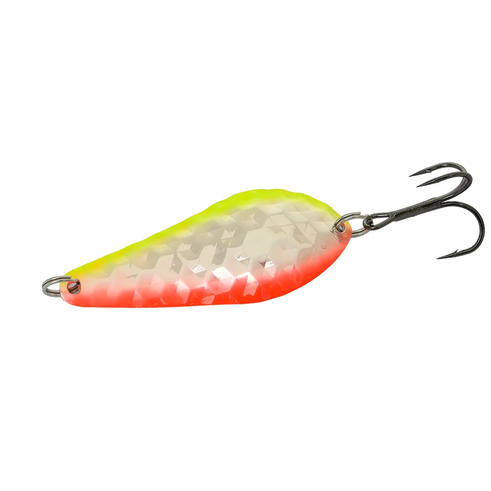 Flagman Atom Diamond 9,5 г 55 мм – універсальні коливні блешні, що довели свою неймовірну ефективність задовго до народження переважної більшості сучасних риболовів. Блешні Атом – це невмируща класика, що вражає своєю уловистістю любителів спінінгової ловлі чимало десятиліть поспіль. Приманки підсерії «D» мають унікальне рифлення поверхні типу Diamond, що створює не тільки «живі» мікрозавихрення водного потоку, але і створює безліч різноспрямованих відблисків, особливо привабливих для будь-якого хижака. Магічне поєднання унікального вигину, складної геометрії тіла із широкою задньою частиною і звуженим носом, звабливої вихляючої з боку в бік розгонистої гри та сміливих колірних рішень вивели цю улюблену багатьма приманку на сучасний рівень, вдихнувши в неї нове життя! Завдяки своїй універсальності блешня Flagman Atom чудово ловить хижака як у стоячих водоймах, так і на річковій течії, збираючи чималий «врожай» різношерстих трофеїв. Коливалки Atom від Flagman відмінно працюють на рівномірному проведенні, рівномірному з паузами й потяжками, рівномірному із чирканням по дну, стоп-енд-гоу, ступінчастому проведенні та їхніх варіаціях, причому, навіть за найменших швидкостей підмотування. Усі моделі Flagman Atom виготовлено з латуні, вони вирізняються винятковою точністю виготовлення та високою якістю лакофарбового покриття. Блешні оснащено міцними кованими завідними кільцями та надзвичайно гострими трійниками VMC. Оригінальні забарвлення пройшли всебічне тестування риболовами-спортсменами й довели свою високу ефективність на численних змаганнях. Блешні Atom – це ідеальні приманки для ловлі щуки, судака, сома, трофейного окуня, жереха, форелі та інших хижаків.