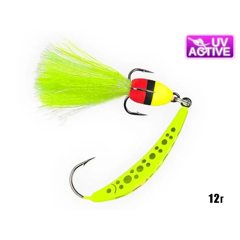 Блешня «Лижа» чудово себе зарекомендувала під час лову пасивного хижака, такого як - судак, щука, окунь і сом. У піздньоосінній і весняний період цією приманкою не проти поласувати і мирні види риб: короп, сазан, карась, лящ і т.д. Приманка лижа виготовлена з якісного свинцю, гачки Kumho вирізняються чудовою гостротою і надійністю. Сама приманка покрита спеціальною люмінесцентною фарбою, яка світиться в ультрафіолеті UV-Active. Особлива родзинка блешні в тому, що вона завжди падає на дно гачком догори, а плаваюча бубишка з люрексом продовжує на паузі погойдуватися, спокушаючи рибу на клювання - достовірно імітуючи рибку, що годується. Блешня лижа дуже універсальна і не вимоглива до проводки, найкращі результати демонструє на різної інтенсивності ступінчастих анімаціях, а також волочінні по дну з паузами.