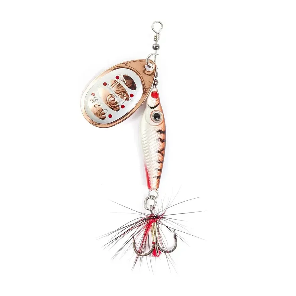 Блешня Lucky John Trian Blade Round - серія обертових блешень Lucky John з класичною овальною формою пелюстки. Її пелюстка зроблений з латуні і має стійко рівним обертанням при різних способах і швидкостях проводки. Під час проводки кут відхилення пелюстки становить 60 градусів. Сердечник приманок зроблений з важкого сплаву, забезпечуючи додаткову дальність при закиданні блешні, а завдяки формі зі зміщеним центром ваги, дозволяє до мінімуму скоротити перекручування шнура під час роботи приманки. На трійнику пов'язана яскрава мушка для більшої привабливості приманки.