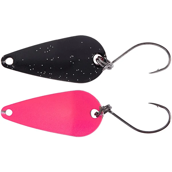 Select Beta - колівна блешня, виготовлена з тонкого металу, завдяки чому має найменшу вагу щодо площі поверхні тіла. Така конструктивна особливість, в поєднанні з оригінальним вигіном, дозволяє досягти стабільної гри навіть на найповільніших проводках, а на паузі змушує блесну сипатися - незамінна властивість при полюванні на обережну рибу в "запресованих" озерах. або гальванічні покриття і оснащуються найгострішими одинарними крючками.