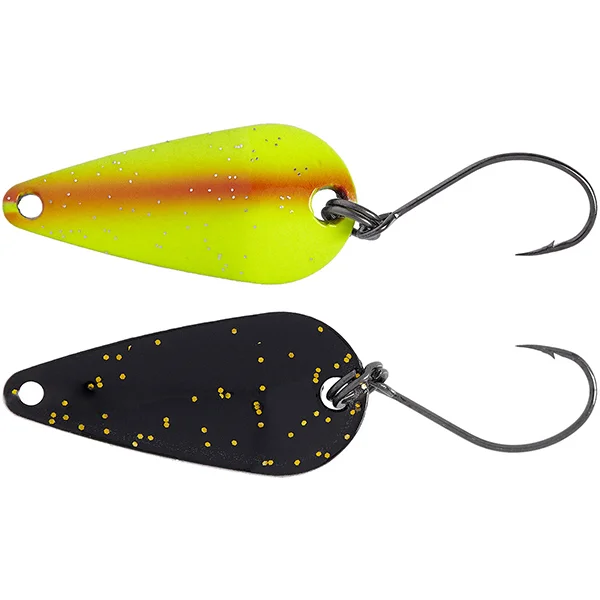 Select Beta - колівна блешня, виготовлена з тонкого металу, завдяки чому має найменшу вагу щодо площі поверхні тіла. Така конструктивна особливість, в поєднанні з оригінальним вигіном, дозволяє досягти стабільної гри навіть на найповільніших проводках, а на паузі змушує блесну сипатися - незамінна властивість при полюванні на обережну рибу в "запресованих" озерах. або гальванічні покриття і оснащуються найгострішими одинарними крючками.