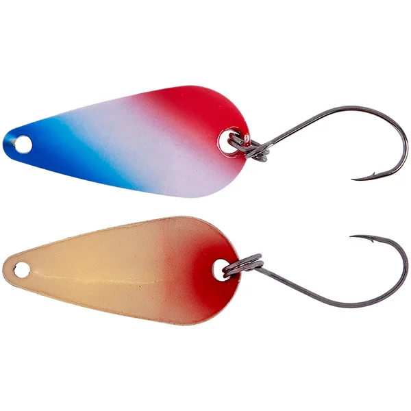 Select Beta - колівна блешня, виготовлена з тонкого металу, завдяки чому має найменшу вагу щодо площі поверхні тіла. Така конструктивна особливість, в поєднанні з оригінальним вигіном, дозволяє досягти стабільної гри навіть на найповільніших проводках, а на паузі змушує блесну сипатися - незамінна властивість при полюванні на обережну рибу в "запресованих" озерах. або гальванічні покриття і оснащуються найгострішими одинарними крючками.