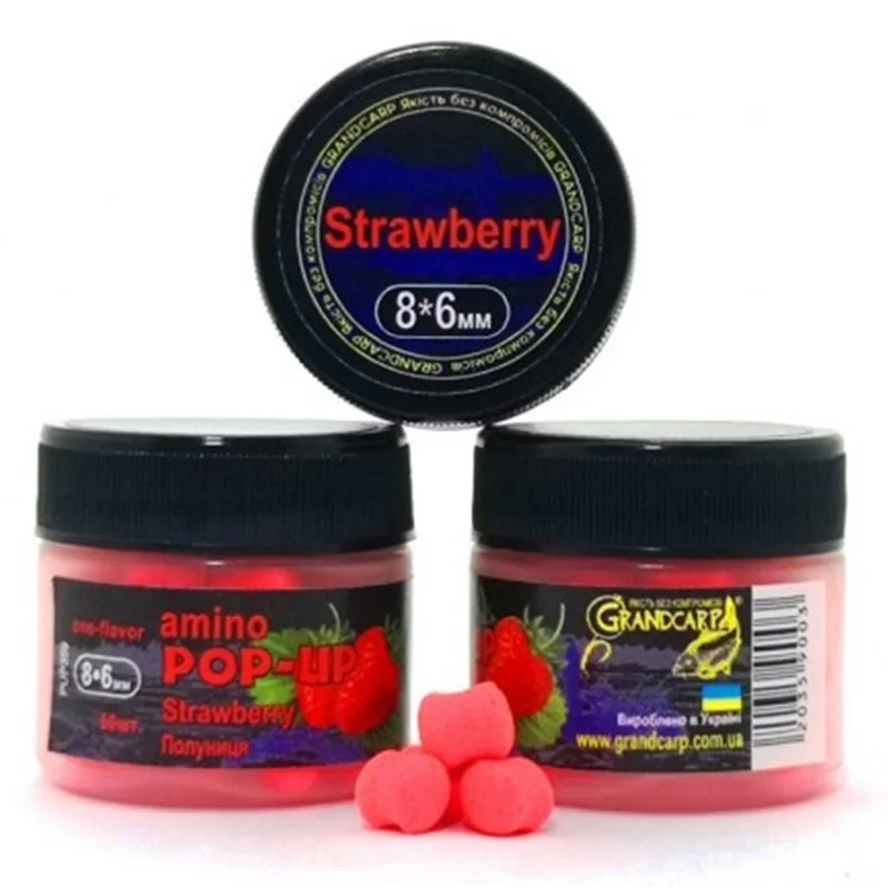 Яскраві полуничні аміно поп-апи - дуже уловиста насадка, відмінно працююча з ранньої весни до пізньої осені. Рекомендуємо спробувати. Ці бойли здатні підняти на висоту огрузки гачок вагою 0.1±0,02 г.