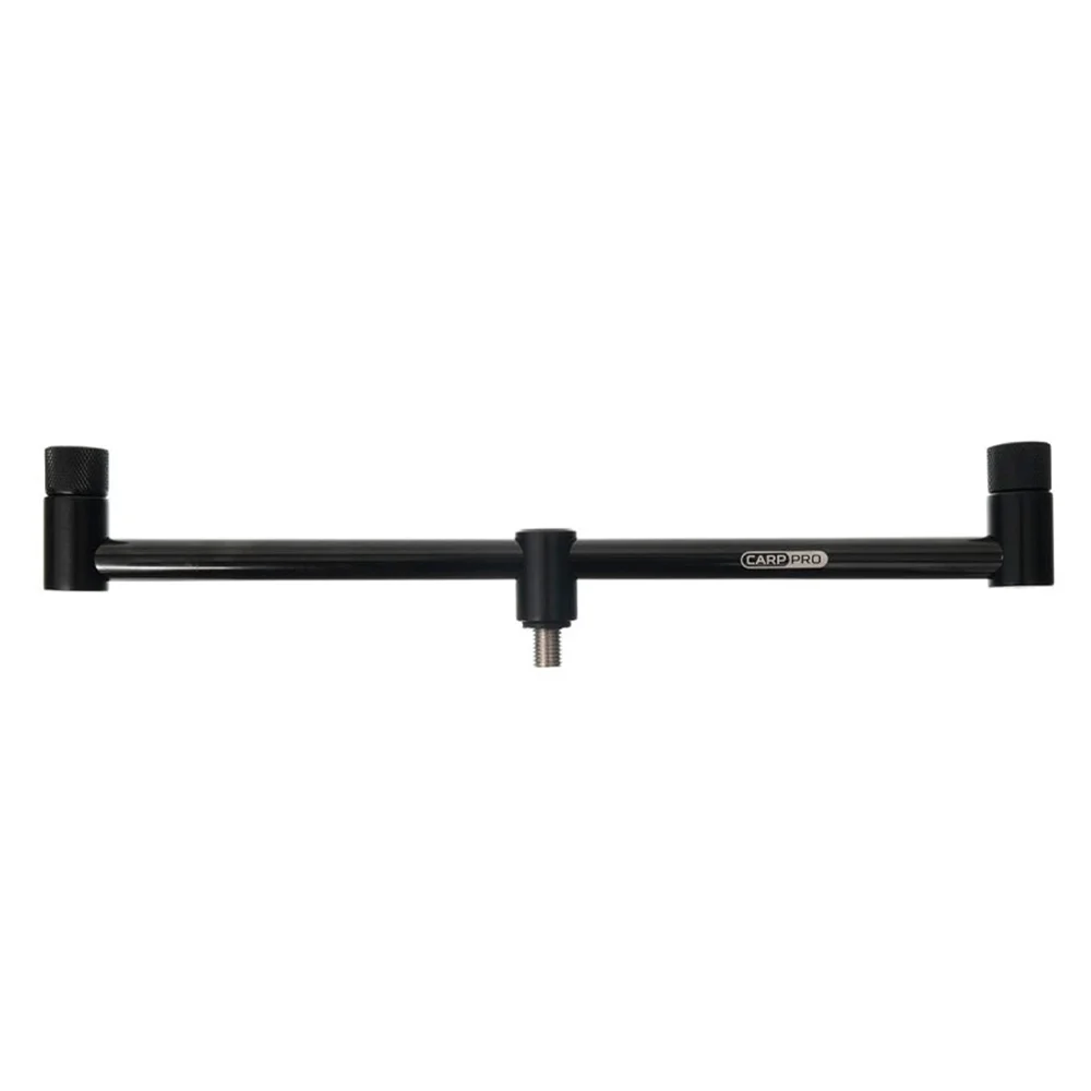 Carp Pro Buzz Bar Deluxe 2 Rod – легкий алюмінієвий буз-бар на два вудлища. Має універсальне різьблення для кріплення до род-поду або стійки, а також для встановлення бат-рестів та електронних сигналізаторів клювання. Для більш надійного кріплення сигналізаторів у місцях їхнього встановлення розташовано спеціальні контргайки. Carp Pro Buzz Bar Deluxe вирізняється високою надійністю та компактністю. Чорне матове покриття не створює відблисків і не відлякує рибу. Довжина цієї моделі Buzz Bar Deluxe 2 Rod – 30 см.