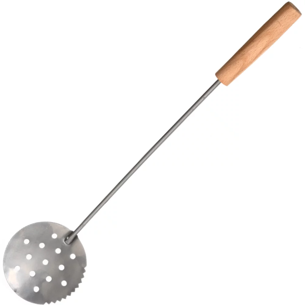 Надійний металевий черпак для очищення лунки від крижаної крихти та криги. Має ряд зазубрин на робочій частині для пробивання тонкого льоду в підмерзлій лунці та обробки її гострих країв.