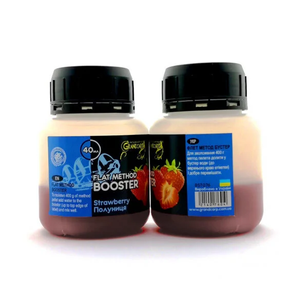 Ці бустери ми випускаємо спеціально для зволоження пелетів, призначених для заповнення флет-годівниць. Але їх також можна використовувати для замішування і просочення стік міксів і метод міксів для підвищення їх харчової привабливості. Бустери не розчиняють ПВА матеріали. кришку і добре перемішайте вміст флакона. Вийде рівно стільки розчину, скільки необхідно для зволоження 400 г пелету (одного пакету). Додайте розчин бустера у воді до пелету. Добре перемішайте пелет і дайте настоятися 10 хвилин. Якщо Вам не треба замішувати весь пакет, зручно взяти будь-яку невелику місткість (мірку), відсипати 6 мірок пелету і додати 1 мірку розчину бустера у воді. Все змішати в зручній для вас тарі і дати настоятися 10 хвилин.