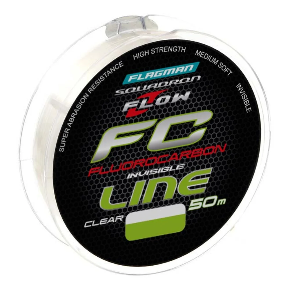 Flagman Squadron Flow Fluorocarbon Line – флуорокарбон нового покоління, який розроблено спеціально для використання в ролі повідцевого матеріалу у фідерній та поплавцевій ловлі. Його виготовлено з високоякісного японського матеріалу за новітньою технологією NS. Коефіцієнт заломлення світла Flagman Squadron Flow Fluorocarbon максимально наближений до коефіцієнта заломлення світла у воді, тому матеріал практично невидимий при зануренні у воду. Squadron Flow Fluorocarbon Line суперстійкий до абразивних і механічних впливів. Має середню жорсткість, низьку пам'ять і високу міцність, зокрема на вузлах. Випускається в широкому спектрі робочих діаметрів та розмотуванні 50 м.