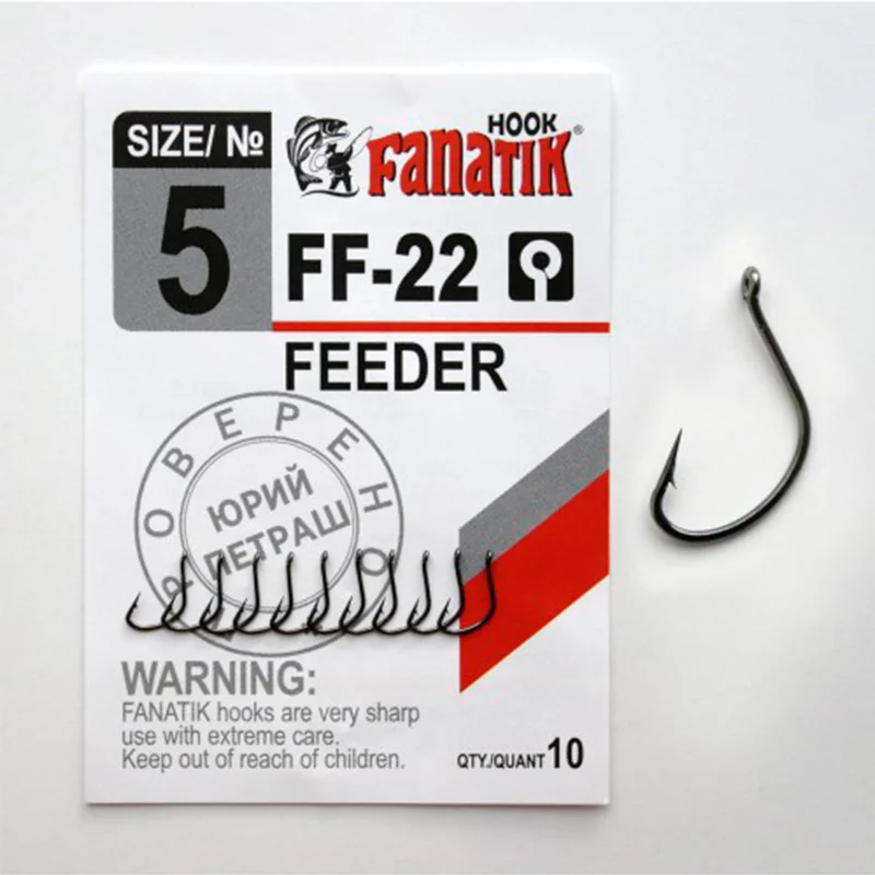 Гачок Fanatik Feeder FF-22 відмінно підходить не тільки для лову фідера. Завдяки чудовій зачепистості (мабуть, це найбільш «самопідсікаюча» форма з усіх існуючих на сьогоднішній день), він широко використовується у всіх видах і способах лову, де миттєва підсікання утруднена через велику дальність закидання або складні умови (вітер, хвилю, погану освітленість). Глибокий піддів дозволяє використовувати при необхідності не тільки тварини, але і рослинні насадки. Завдяки середній товщині дроту навіть м'які рослинні суміші, не кажучи вже про зерна і пластівці, тримаються на цьому гачку чудово. Модель вражаюче універсальна в сенсі видового розмаїття риб, на яких ви вирішили пополювати: лящ, плотва, короп, карась, інші мирні риби будь-якого розміру, сніжними губами або м'ясистою пащею ... всіх цей гачок зачіплює однаково надійно, і не відпускає до самого підсаку. Міцність і довговічність цих гачків корейського виробництва абсолютно бездоганні - високовуглецева сталь VHI-Carbon є на сьогоднішній день кращим матеріалом, при правильному загартуванні вона гарантує гачку і жорсткість, і пружність, і гостроту.