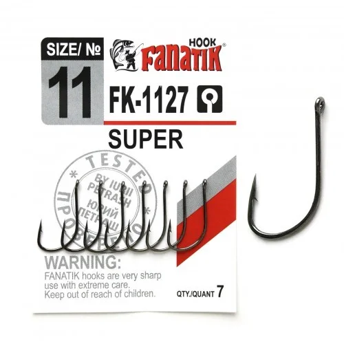 Це найуніверсальніші гачки для лову білої риби. Якщо ви любите в рибалці різноманітність, вмієте ловити будь-яку білу рибу різними способами і не хочете забивати собі голову тонкощами застосування різних моделей – сміливо запасайтеся гачками Fanatik SUPER FK-1127 у різних розмірах. Можете бути впевнені: це висококласний гачок, що поєднує у своїй усередненій формі безліч переваг спеціалізованих моделей. Мабуть, тільки для великих хробаків знадобиться щось з довшим цівкою - а у всіх випадках лови на мастирку і тісто, зерна і пінопласт, мотиля, опарыша або попкорн ви легко і зручно розмістите свою насадку або наживку на гачку, при необхідності сховавши його жало , залишивши його відкритим для забезпечення миттєвої підсічки при темповому лові активної риби). Дуже зручно формувати на таких гачках різні «бутерброди» з мотиля, опаришу або зерен. Один раз прив'язавши такий гачок, просто забуваєте про нього. Гачки Fanatik корейського виробництва не тупляться, не іржавіють, завжди залишаються такими ж смертоносними маленькими злюками, як і в перший день вашого знайомства. Просто ловіть рибу - гачок SUPER не підведе!