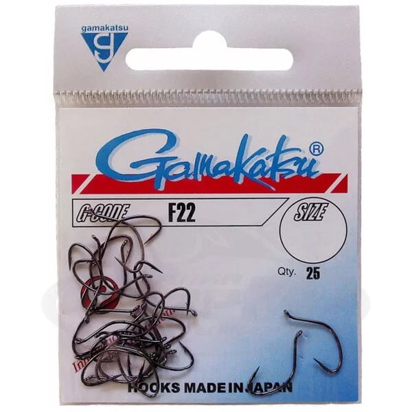 Gamakatsu F22 Black - гачки з кільцем і кованим цівкою. Модель спочатку позиціонується як гачок для виготовлення мушок, але у нас гачок знайшов широке поширення у фідері.