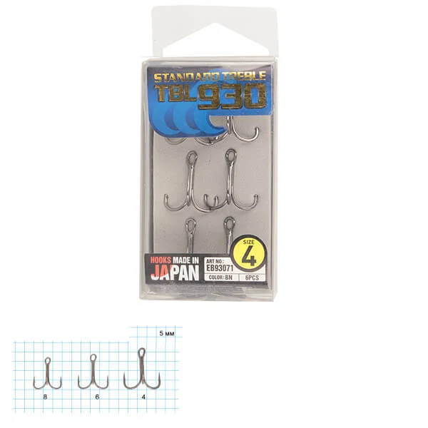 Hayabusa TBL-930 – трійники з круглим загином гачків та дуже гострим фірмовим заточуванням жала (Aero Point). Гачки моделі TBL-910 мають відцентроване колечко для ідеального балансування вашої приманки. Гачки HAYABUSA FISHING HOOKS Company (Японія) виготовлені з високовуглецевої сталі "High Carbon", що є результатом високотехнологічного виробничого процесу, що забезпечує гачку стабільність та пружність. Для кращого проникнення застосовано хімічне заточення вістря.