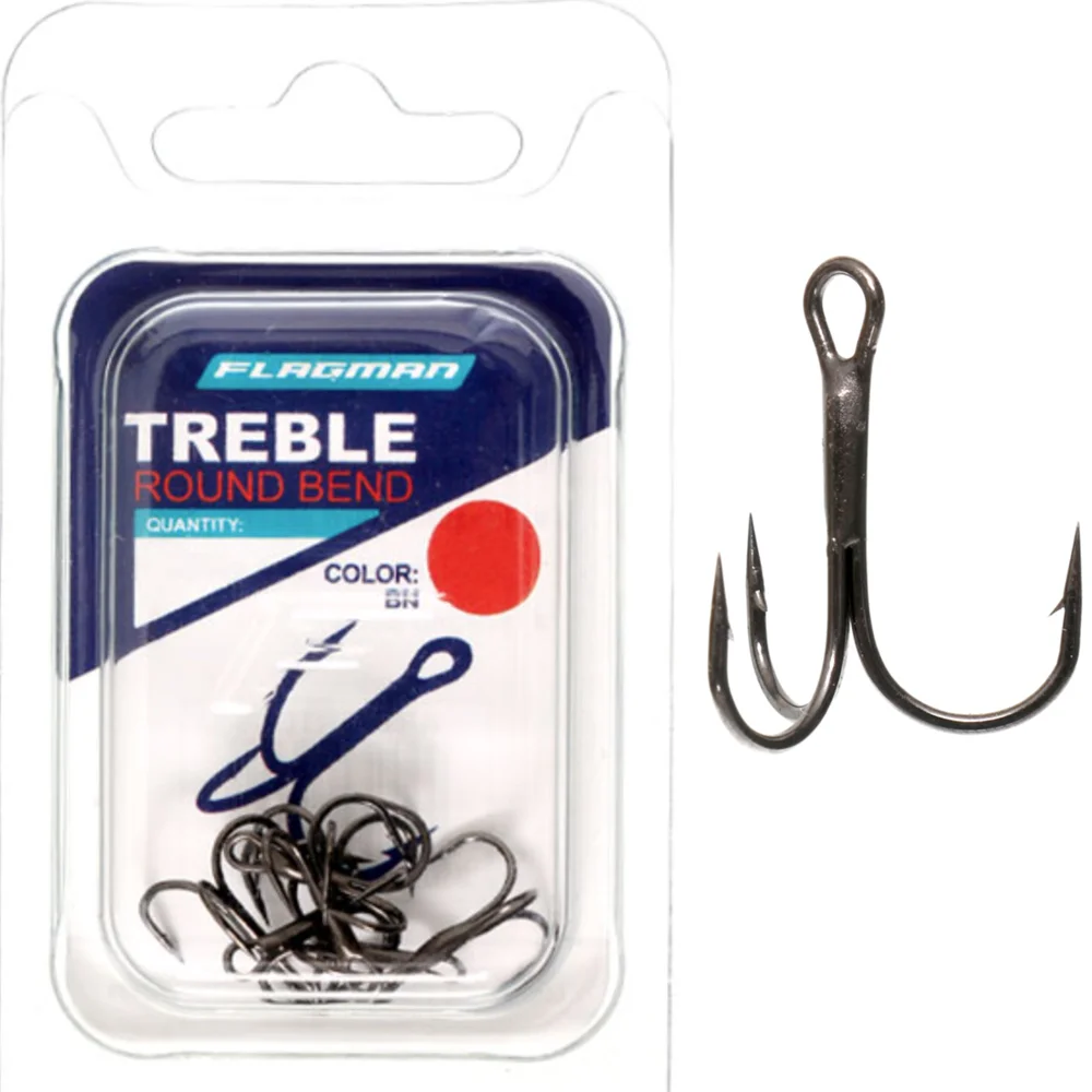 Flagman Round Treble - класичний трійник, виготовлений з високоміцної сталі. Характеризується круглим загином і голковим заточуванням жала. Темне, захисне покриття Black Nickel не дає відблисків у воді, ефективно приховуючи гачок. Гачки Flagman Round Treble широко використовуються як з штучними приманками, так і для ловлі з мертвою рибкою або при ловлі на живець.