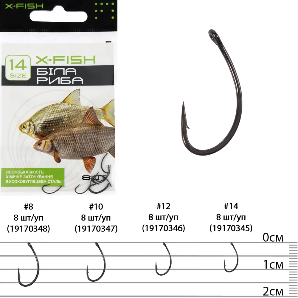 Гачок X-Fish Біла Риба – універсальні моделі для більшості ситуацій. Особлива увага приділена формі, завдяки чому гачки цієї серії є дуже ефективними для лову мирної риби різноманітними техніками. Для оптимального вибору гачка під особливості лову, такі як тип насадки або наживки, розміри очікуваних особин і деякі інші, модельний ряд представлений декількома розмірами. Ці гачки чудово справляються із завданнями ефективного підсікання та надійного утримання риби в процесі виведення. Гачок X-Fish Біла Риба - вдалий вибір для досвідчених рибалок.