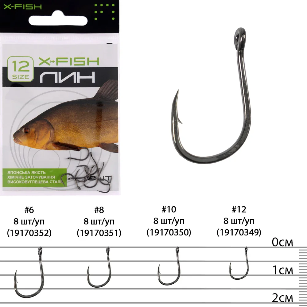 Гачок Гачок X-Fish Лин – низка посилених моделей для складних умов і форсованого виведення. Особлива увага приділена формі, завдяки чому моделі набули особливої міцності. Для оптимального вибору гачка під особливості лову, такі як тип насадки або наживки, розміри очікуваних особин і деякі інші, модельний ряд представлений декількома розмірами. Ці гачки також чудово впораються із завданням ефективного підсікання та надійного утримання у процесі виведення коропа, білого амура та іншої великої мирної риби. Гачок X-Fish Лин – вдалий вибір для трофейної риболовлі.