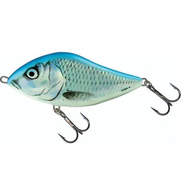 Ця приманка — істинний віртуоз з великої родини приманок, розроблених для лову великої хижої риби. Вліво-вправо, вліво-вправо: такий звивистий танок виконує SLIDER, який доведе будь-яку хижу рибу до пристрасного клювання! Клювання завжди відбувається жадібно з потужним вибухом агресії. Пінливі бризки води та виск гальм котушки — це те, що чекає на Вас найближчим часом. Підігніть борідки трійників на приманці, щоб легше відчіплювати її з пащі хижої риби. Глибоко вдихніть і приготуйтеся до наступного сильного протистояння! Зазвичай на приманку Slider рибу ловлять ривковим проведенням. Ривки спінінгом мають бути дуже енергійні та швидкі. Бажано, щоб перед початком лову риби ви зробили кілька пробних закидів у прозорій воді, щоб побачити реакцію Slider на ваші дії спінінгом, так, щоб він «нишпорив» із боку в бік і після кожного розвороту повертався до правильного напрямку проведення. Важливо, після кожного ривка не послабляти волосінь, щоб постійно був контакт із приманкою, яка ковзає з боку в бік, цим також виключається перехльостування волосіні переднім гачком. Інші методи проведення, під час лову риби на Slider, теж мають місце — Slider завжди чудово працюватиме! Хай який би метод проведення ви вибрали, вважаючи його найефективнішим, треба постійно стежити за роботою приманки, щоб не було його перехльостування з волосінню. Дуже важливий і спосіб проведення приманки, наприклад, коли температура води дуже низька (2-5˚C) — найкращі результати будуть досягнуті під час лову риби у разі повільнішого проведення, зі збільшенням пауз до 3 секунд між ривками, а ривки мають бути м'якшими. Slider, що тоне — найвідповідніша приманка для такого лову, позаяк під час зупинки, у разі вільного падіння, вона починає коливатися, цим додатково приваблюючи хижака. У разі підвищення температури води, швидкість проведення має бути збільшена. Slider незвичайно гарний для лову тролінгом на мілководді, відпустіть його на 10-30 метрів за човном і кожні кілька секунд робіть ривки спінінгом, точно також, як Ви робите це під час звичайного ривкового проведення. Без сумніву, нові мікроприманки Slider, завдовжки 5 і 6 см, стали фантастичною новинкою в сезоні 2010 року. Це найменші глайдери, доступні на ринку зараз. Ентузіасти джерк-приманок і ультралайта мають гарний шанс показати все те, що вони зможуть зробити з їхньою допомогою! Ви зможете спіймати фактично будь-яку «спокусу» з новими різновидами глайдерів Slider.