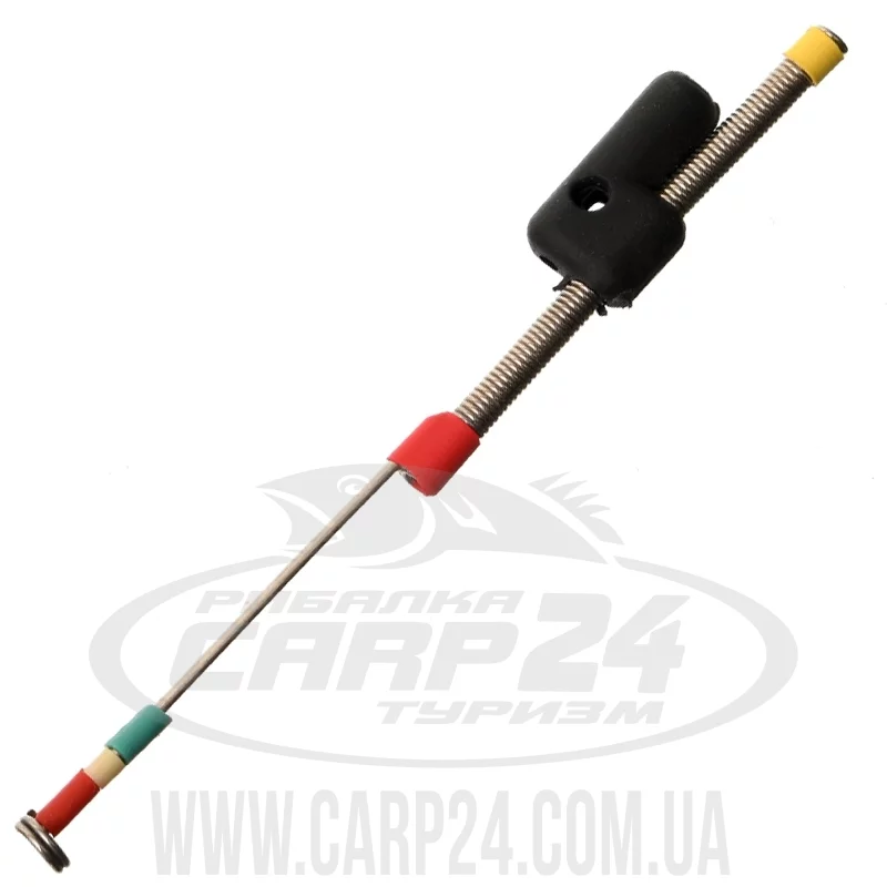 Достатньо потужний кивок для приманок вагою 6-14 г, який виготовлено зі звитої пружини і пружного сталевого дроту. Його призначено для прямовисної ловлі важкими приманками: балансирами, бокоплавами, блешнями тощо. Чудово підійде для донної ловлі білої риби з криги з мікрогодівницями або ковзними грузилами. Робочий край кивка забарвлено в яскраві контрастні кольори, що гарантує чудову помітність як на темному, так і на світлому фоні. Кріплення виготовлено з еластичного матеріалу, що дає змогу використовувати кивки на зимових вудках із різним діаметром вершини. Довжина кивка: 7 см. Довжина: 70 мм Вага приманки: 6-14 г