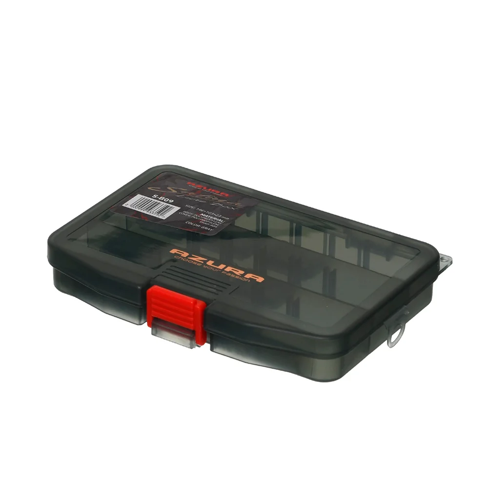 Azura Safina Lure Box #9 – серія односторонніх пластикових коробок, які ідеально підходять для зберігання спінінгових приманок, рибальського приладдя та аксесуарів. Усі коробки Azura Safina Lure Box #9 виготовлено з високоякісного затемненого прозорого пластику, вони вирізняються сучасним дизайном, довговічністю, стійкі до матеріалу м'яких приманок. Добре підігнана кришка та надійна защібка оберігають вміст коробки від проникнення вологи та бруду.