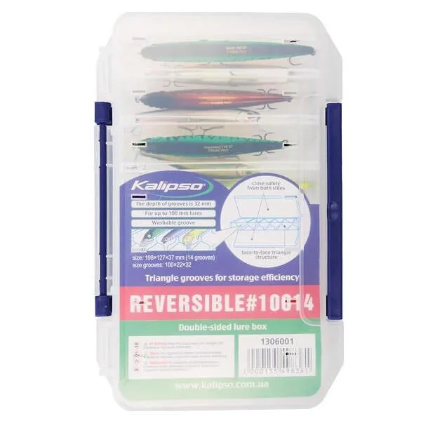 Golden Catch Reversible – це двостороння коробка збільшеної ємності для ефективного зберігання великих воблерів, пілкерів, та інших приманок аналогічної пропорції. Завдяки V-подібному профілю комірки досягається максимально раціональне використання внутрішнього простору. перенесення. Коробка Golden Catch Reversible - відмінний аксесуар, що дозволяє комфортно зберігати і переносити великі спінінгові приманки, як при береговій, так і на човновій рибалці.