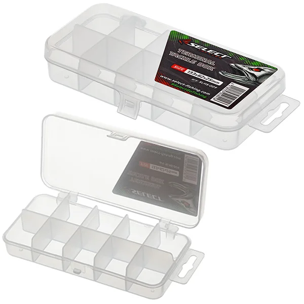Коробка Select Terminal Tackle Box призначена для зберігання різних рибальських аксесуарів та елементів оснастки, наприклад, гачків, карабінів, вертлюгів, заводних кілець тощо. Завдяки використанню сучасних пластиків, вона тривалий час не втрачає своїх функціональних можливостей і не завдає незручностей користувачеві. Серія коробок Select Terminal Tackle Box включає декілька моделей, кожна з яких має свої переваги для зберігання тих чи інших аксесуарів. вертлюгів або інших складових спінінгової, фідерної або коропової оснастки. Кришка оснащена надійними поворотними петлями і засувкою, що швидко закривається. Невеликі розміри коробки дозволяють переносити її в кишені або в поясній рибальській сумці Розміри, ДхШхВ: 13.3х6.2х2.5 см