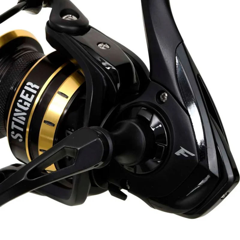 Flagman Stinger – новинка 2023 року – серія універсальних котушок для широкого кола риболовів, що вирізняються стильним дизайном, чудовою динамікою і відмінними тяговими характеристиками. Легкий і міцний графітовий корпус котушки добре поєднується з компактним графітовим ротором і плавним ходом злагодженого механізму. У чудово збалансованому кулісному механізмі встановлено 5+1 високоякісних підшипників, що забезпечує котушці легкий хід і високі тягові характеристики. Точена алюмінієва шпуля з конічним буртиком і ролик укладача жилки із системою Anti-Twist оптимізовано під використання тонких сучасних РЕ-шнурів, а вдосконалений кулісний механізм із системою S-Curve Oscillation забезпечує їхнє якісне укладання, що істотно підвищує дальність і точність закидання. Ручку котушки виготовлено з алюмінію. Ухопистий кноб обгумовано, він має зручну форму. Плавне регулювання фрикціону дає змогу точно встановити необхідне гальмівне зусилля. У комплекті м'який тканинний чохол. Котушки Flagman Stinger ідеально підійдуть як для спінінгового лові і тролінгу, так і для фідерної чи поплавцевої ловлі у важких умовах експлуатації. Характеристики Flagman Stinger: Загальні характеристики Призначення котушки: Спінігова Розташування фрикціона: Передній Наявність бейтранера: Без бейтранера Матеріал шпулі: Метал Руків'я котушки: Універсальна Тип котушки: Безінерційні Технічні характеристики Кількість підшипників: 5+1 Редукція: 5.1:1 Місткість жилки: 0.16 мм / 200 м, 0.23 мм / 100 м Намотування за оборот: 79 см Розмір і вага Розмір: 4000S Вага: 298 г