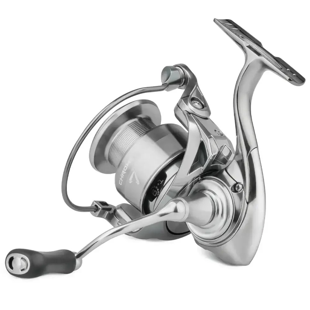 Select Chrome – це високоякісна, сучасна, надійна та естетично приваблива спінінгова котушка, яка задовольнить вимоги як початківців, так і професіональних рибалок. Корпус котушки виготовлений з міцного ударостійкого пластику. За плавний хід і рівномірне укладання шнура відповідає один роликовий підшипник та шість кулькопідшипників, два із яких знаходяться в ролику жилкоукладача. Котушка Chrome оснащена алюмінієвою шпулею зі скошеним переднім краєм. Залежно від модифікації котушки, шпуля може бути глибокою або мілкою. Металева ручка вкручується безпосередньо у привідну шестерню, що забезпечує щільне з'єднання та мінімізує люфт. До того ж в даній котушці відсутній перемикач реверсу, що робить її конструкцію простішою та, відповідно, надійнішою. Лінійка котушок Select Chrome доступна в чотирьох типорозмірах: 1500, 2000, 2500 та 4000.