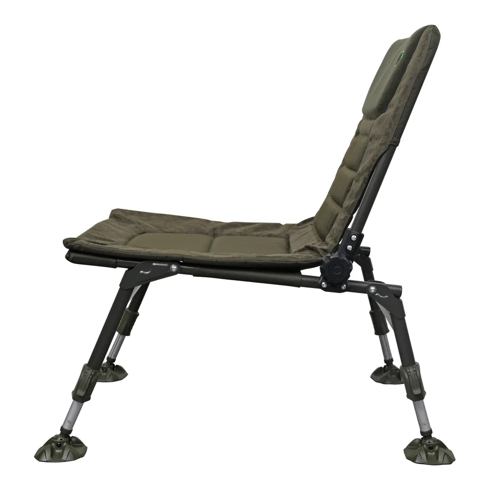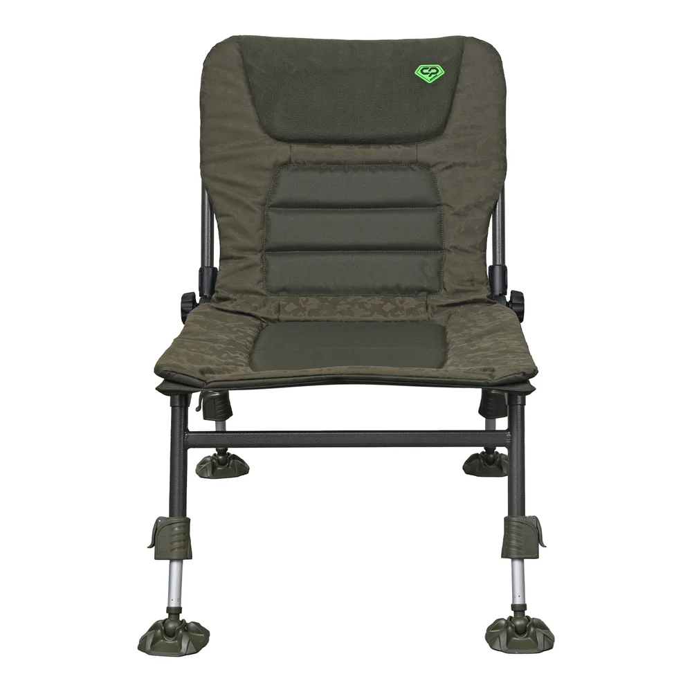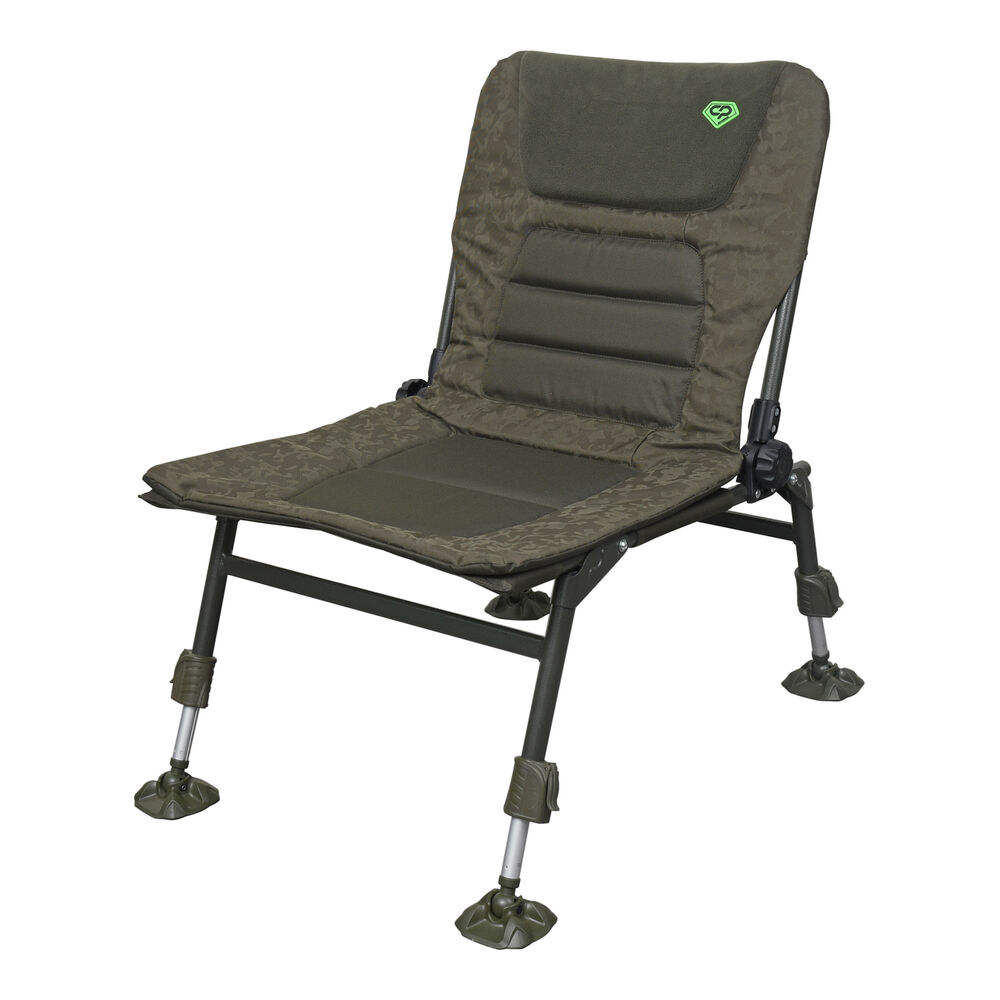 Carp Pro Diamond Compact Chair – складане крісло без підлокітників, що спеціально розроблено для класичної коропової та флет-фідерної ловлі і яке гарантує риболову високий рівень комфорту. Через відсутність підлокітників маємо вільний доступ до вудлища та навісного устаткування. За рахунок використання надійної та міцної рами зі сталі та алюмінію, крісло без проблем витримує високі навантаження – до 130 кг. Оббивку крісла в унікальному камуфляжному забарвленні Carp Pro виконано зі зносостійкого водовідштовхувального матеріалу 650D і м'якого мікрофлісу. Завдяки великому підголівнику та м'яким вставкам із піноматеріалу з ефектом пам'яті в підголівнику, сидінні та спинці, тіло набуває природного положення, що сприяє довготривалій і нестомлюючій ловлі. Коропове крісло Carp Pro Diamond Compact Chair швидко встановлюється, а кут нахилу спинки легко і просто регулюється в широких межах гвинтовими фіксаторами з боків. Крісло можна без проблем розмістити на нерівній і похилій поверхні завдяки чотирьом телескопічним ніжкам із надійними та легкими у використанні фіксаторами. Ніжки оснащено збільшеними шарнірними п'ятами, які не дають кріслу провалюватися в м'який ґрунт і забезпечують додаткову стійкість на похилій поверхні. У транспортному положенні крісло CP Diamond Compact Chair досить компактне і зручне для перевезення. Характеристики Carp Pro Diamond Compact Chair CPHD76237N: Унікальний камуфляжний матеріал Carp Pro Легка рама, яку виготовлено зі сталі та алюмінію Регульована спинка Регульовані ніжки Міцні фіксатори ніжок забезпечують відмінну стійкість Великі грязьові п'яти на шарнірах Товстий м'який матрац із піноматеріалу з ефектом пам'яті та флісовим покриттям посередині М'який підголівник із піноматеріалу з ефектом пам'яті та флісовим покриттям Зручна для перевезення складана конструкція