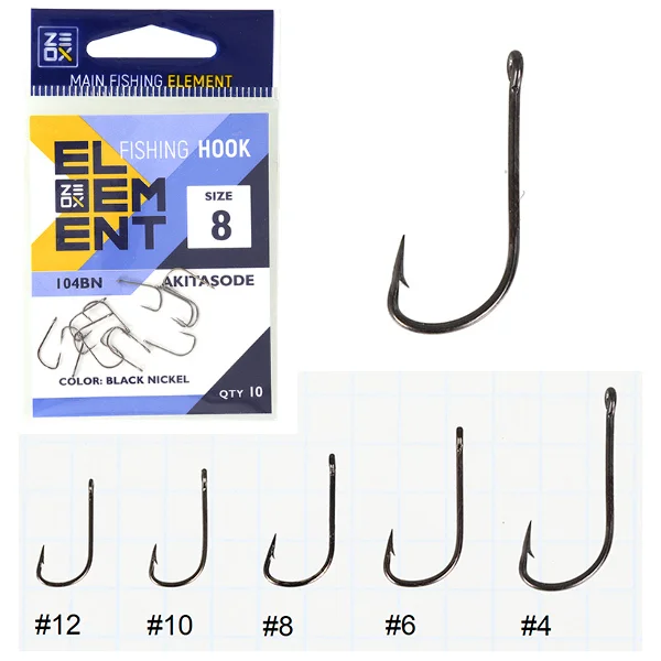 Zeox Akitasode - класичний крючок для донної та поплавцевої лову. Універсальна форма яка підходить як для тваринних, так і для рослинних насадок. Середня товщина проволоки забезпечує надійність при лові навіть великої риби, а вушка ближче і зрозуміліше рибалкам-аматорам. Розміри від 4 до 12 номерів. Хімічна заточка жала забезпечує чудову гостроту і як наслідок відмінну засікаємість. Покриття Black Nickel запобігає передчасній корозії.