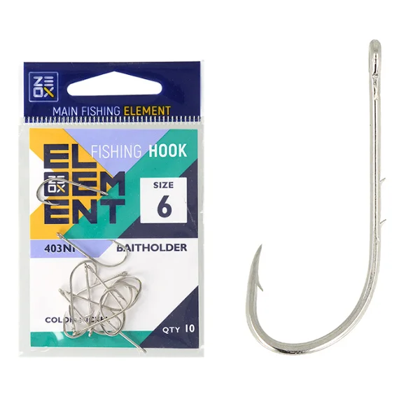 Zeox Baitholder відрізняється невеликим доворотом жала та наявністю додаткових насічок на цівку, які покликані утримувати наживку на крючку. Це особливо актуально при лові на нижні наживки, які легко збиваються рибою з гачка. Baitholder доступні у розмірах від 8 до 4/0. Хімічна заточка жала в парі з двогибим підчепом забезпечує чудову засікаємість. Покриття Nickel запобігає передчасній корозії та дозволяє використовувати крючок у морській воді.
