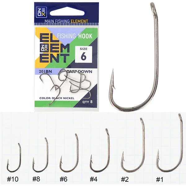 Zeox Carp Down – потужний короповий крючок форми Вайд гейп. Він добре поєднується з різними насадками та волосяними оснащеннями. Можна користуватися в розмірах від 10 до 1. Посилення кувань піддягши дозволяє впоратися навіть з трофейною рибою. Хімічна заточка жала забезпечує чудову гостроту і як наслідок відмінну засіканість. Покриття Black Nickel запобігає передчасну корозію.