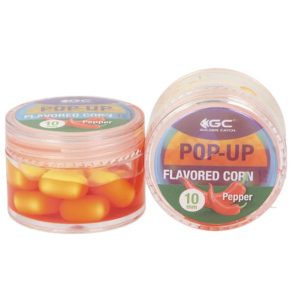 Кукурудза в діпі Golden Catch Pop-Up Flavored - силіконова плаваюча насадка, що є точною копією зерна кукурудзи, яка володіє яскраво-жовтим кольором і просякнута високоякісним атрактантом. Випускається у 2-ох розмірах: 8 і 10 мм, а також у 7-ми ароматах: Мед, полуниця, ананас, креветка, Часник, шоколад та солодка Кукурудза. Дана насадка виготовлена з досить пружного силікону, який має підвищену зносостійкість і дозволяє багаторазово застосовувати кожну із зерен. у банці