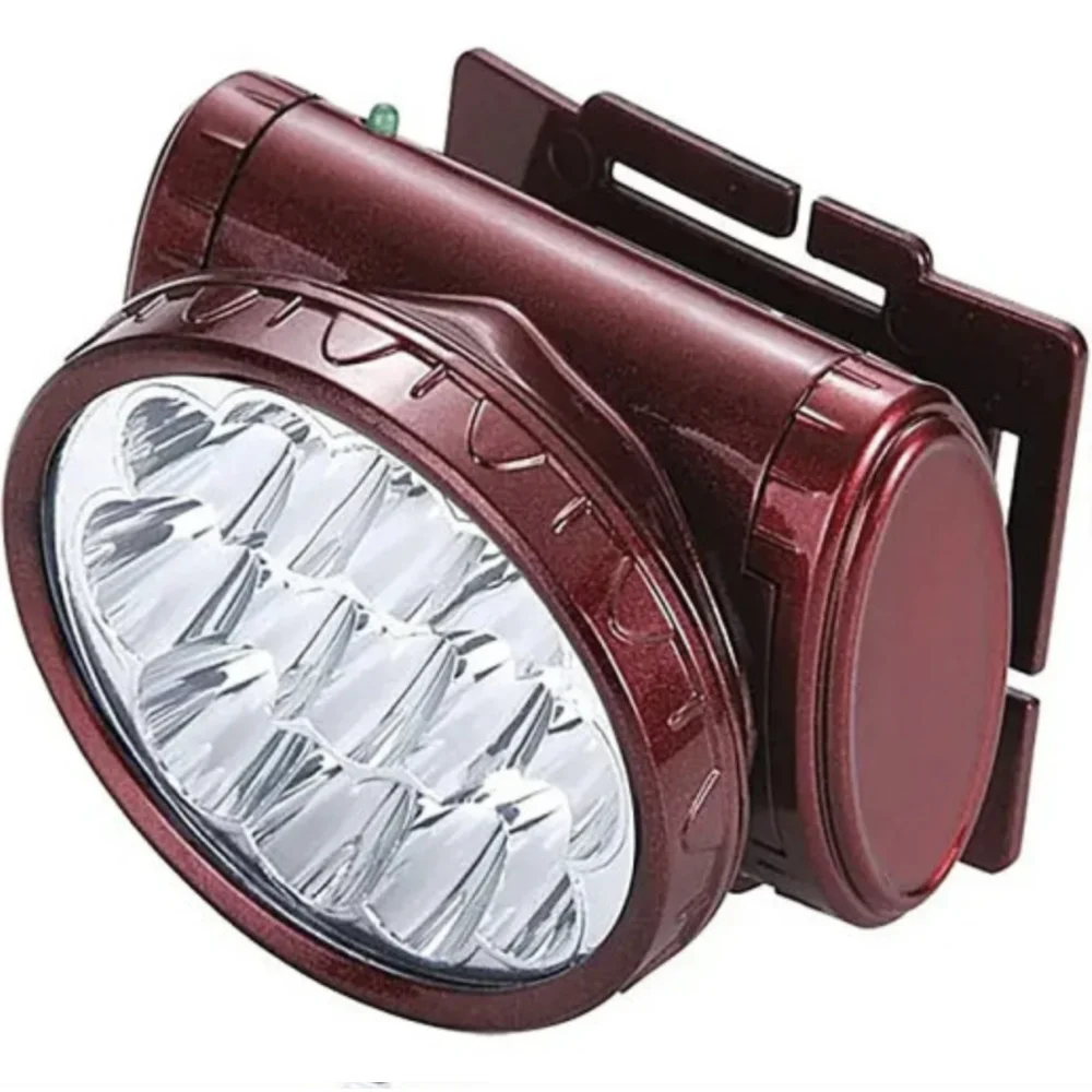 Розміри: Ø74х60, L53ØH65ØW84 мм Додаткові характеристики: Регульований кут нахили голови ліхтаря до 180 градусів. Корпус - пластик. Комплектація: ліхтарик, шнур для зарядки від мережі 220V, налобний ремінь Живлення: акумулятор 400 mAh Матеріал: Пластик Тип живлення: акумуляторний Тип діода: LED Кількість режимів роботи: 2 (13LED, 9LED) Тип пристрою: налобний Кількість діодів: 13 Зарядний пристрій 12В: Немає Оптичний зум: Немає Час роботи 10 -15 годин