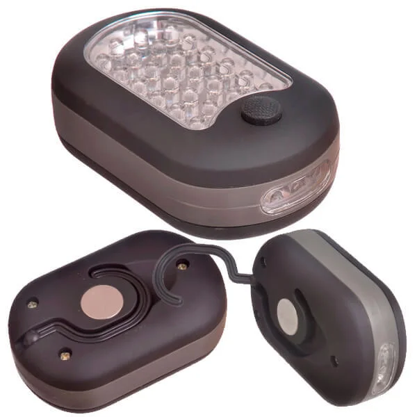 Навісний ліхтарик Forrest оснащений 27 світлодіодами, які забезпечують яскраве освітлення. Для зручності користування ліхтарик оснащений гачком для підвішування та магнітом для кріплення до металевих площин. Корпус виконаний із якісного пластику. Підтримує два режими роботи: освітлення від 3 LED та освітлення від 24 LED. Працює від 3-х батарей ААА (у комплект не входять)