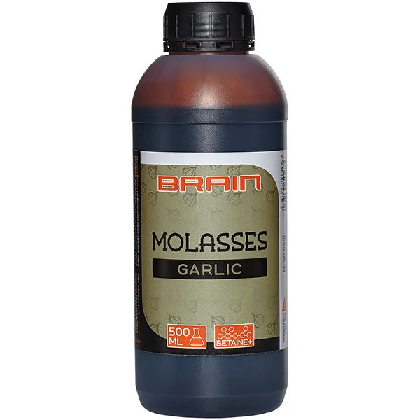 Меляса Brain - це високоякісна меляса для замішування сипучих прикормок та додавання в зернові суміші, пелеті та бойлі. Завдяки підвищеному вмісту триметилгліцину, і легко засвоюваних вуглеводів (насамперед цукрів) меляса цієї ТМ відмінно привертає рибу, і підвищує поживність будь-якої, навіть найпростішої підгодовування. Крім того, меляса Brain не загусає і не блукає при тривалому зберіганні, що є суттєвим конкурентним перевагою. При замішуванні сипучих сумішей рекомендується розводити мелясу з водою, у пропорції 1:5, для полегшення замішування. Для зернових сумішей, гранул та різаних бойлів краще використовувати концентрований продукт.