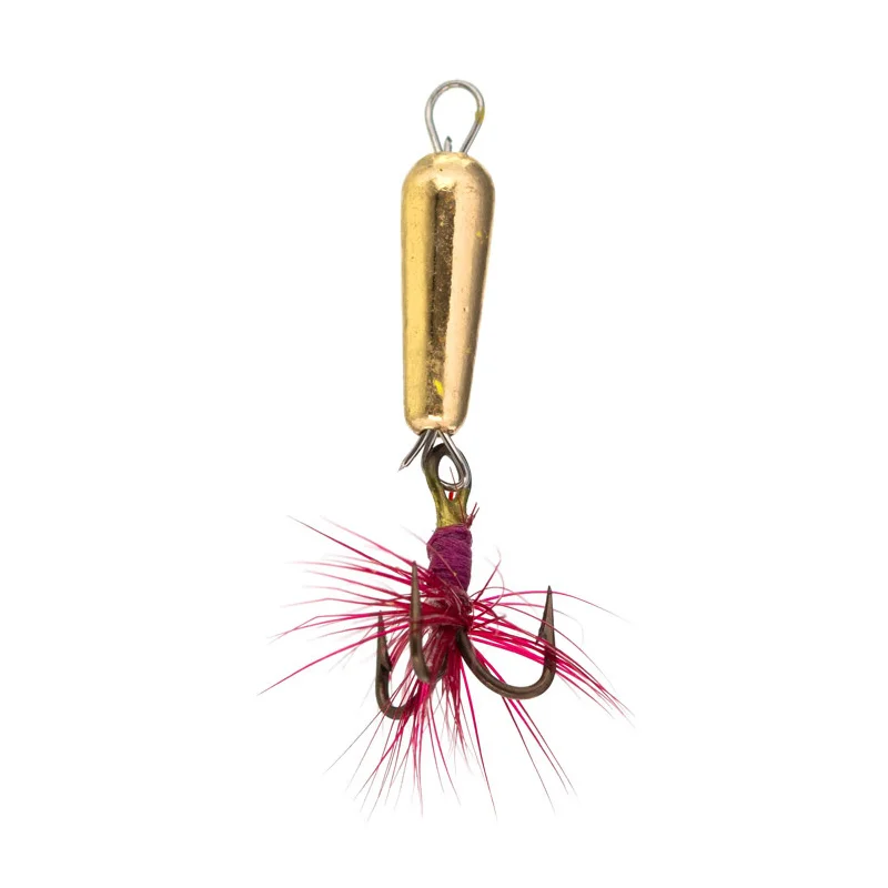 Безнасадкова вольфрамова блешня «Чортик» з підвісним трійником та мушкою з півнячого пера. Імітує природний корм підводних жителів прісних водойм – личинки бабок та інших комах. До жилки приманка кріпиться за петельку у верхній своїй частині, тому приймає у воді вертикальне положення. Ефективна як за активної, і за повільної гри. Вдало «ловить» окуня, плітку, густеру та ляща. Виготовляється в найбільш затребуваних кольорах і розмірах.