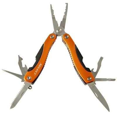 Мультитул рибальський Select SL-MT01 - універсальний інструмент, який допоможе вирішити деякі завдання зі снастями, побутом або обладнанням під час знаходження на природі. Він складається з плоскогубців із розтисканням для заводних кілець, кусачками та пристосуванням для обтискання трубок під час виготовлення повідців. Крім цього, в ручках знаходяться додаткові складні інструменти: ніж класичний та ніж із зубчастим лезом, компактний напилок, відкривалки для пляшок, викрутки – шліцеві та хрестові, а також шило. Інструмент виконаний із міцної нержавіючої сталі, яка не втратити свого зовнішнього вигляду навіть після частих контактів із водою. Для перенесення мультитул компактно складається, тому не буде займати багато місця в рибальській сумці або в ящику та може завжди знаходитися під рукою для виконання різних завдань. витягнута форма для вилучення гачка з пащі риби; розжим для заводних кілець; кусачки для обрізання волосіні або шнура; пристрій для фіксації обтискних трубок на повідцях; ; - компактний напилок; - відкривалки для пляшок; - дві шліцеві викрутки та одна хрестова; - потужне шило; - підпружинені рукоятки; - компактні розміри у складеному вигляді для зручності транспортування.