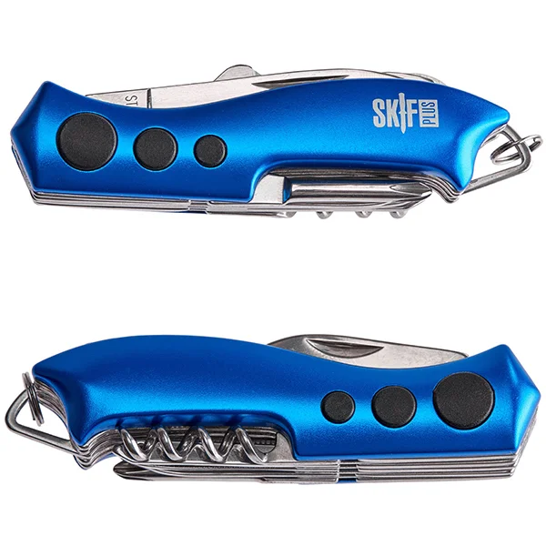 Мультитул Skif Plus Wavy є невеликим, але дуже корисним інструментом, який буде актуальним практично в будь-якій ситуації. Набір інструментів у цьому невеликому мультитулі варіюється від пилки до викрутки, при тому, що габарити мультитула складають всього 96 мм завдовжки при масі 114 грамів. Накладки на руки виготовлені з алюмінієвого сплаву з анодуванням і доповнені пластиковими вставками. У наборі інструментів входять: n-n- Клинок. . - Пилка. - Рибочистка. - Інструмент для зняття крючка. - Викрутка Phillips. - Штопор. - Шило. - Інструмент для чищення нігтів. - Пилка для нігтів. - Криголам. - Кільце для ключів.