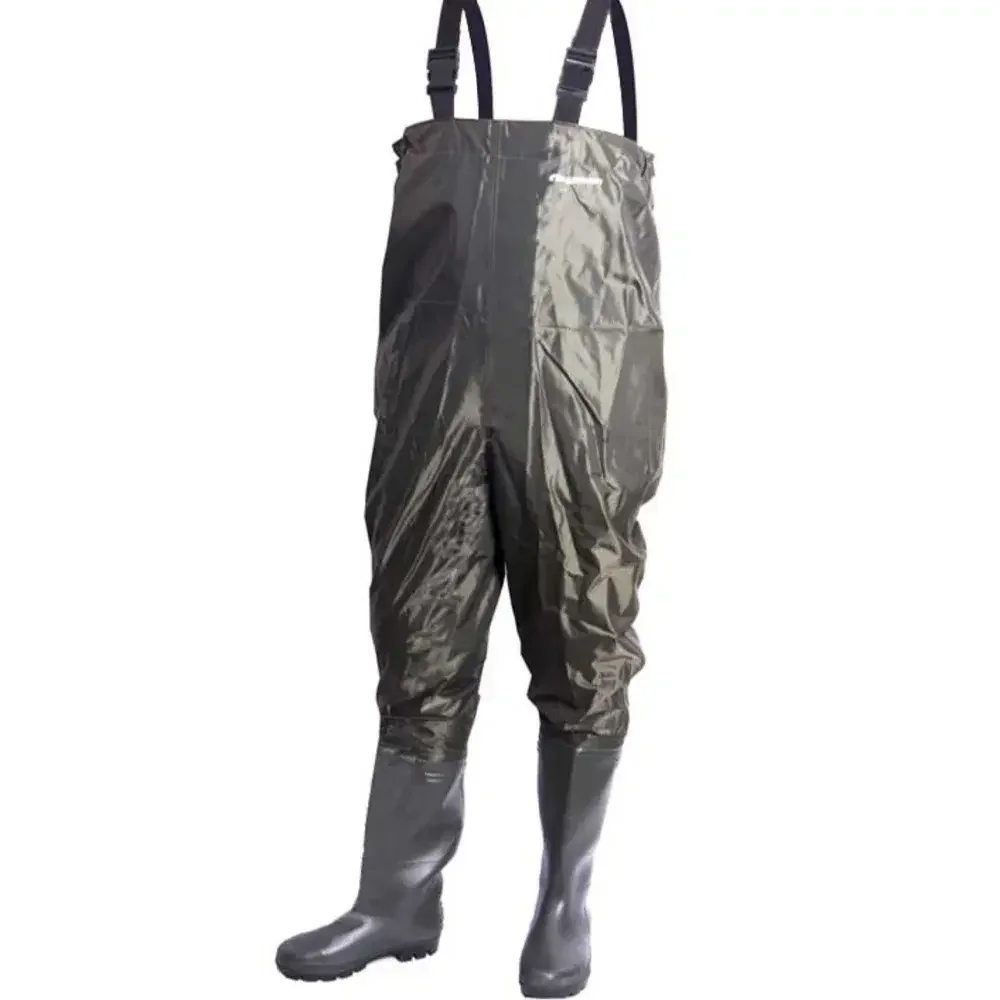 Напівкомбінезон ідеально підійде для риболовлі і полювання у будь-яких погодних умовах. Комфортне носіння забезпечується за рахунок застосування якісних матеріалів, які надають цьому елементу одягу еластичність, міцність і водонепроникність. Напівкомбінезон складається з легкого, міцного і водонепроникного верху(нейлон з шаром ПВХ) і чобіт. Чоловічі чоботи мають підошву на товстому і глибокому протекторі. Шов з'єднання і шви крою міцно зварені, що виключає протікання води. Шлеї напівкомбінезона забезпечені карабінами і регулюються по висоті відповідно до зростання.