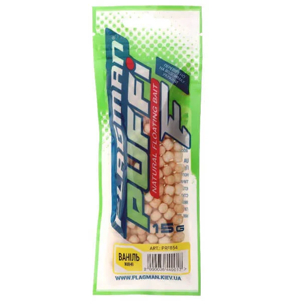 Flagman Puffi - серія яких приманок на основі натурального тіста з добавкою різноманітних ароматів. Відрізняється високою плавучістю і добре помітна у воді. Приманка є ароматизованими кульками, які легко насаджуються на рибальський гачок і у воді приймають м'яку консистенцію. При цьому вони досить довго тримаються на гачку, не розкисаючи і не розвалюючись. Завдяки своїм смаковим якостям та запаху, насадка добре приваблює представників коропових. Тим більше, що в серії Puffi midi є улюблені коропові аромати - Аніс, Часник, Ваніль, Мед, полуниця.