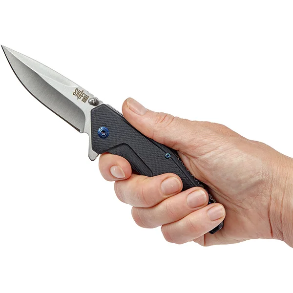 Складаний ніж Skif Plus Cayman - новинка 2020 року. Модель відрізняється вдалим поєднанням футуристичного і класичного дизайну та стане хорошим вибором для щоденного використання в умовах міста. Клинок форми Clip-Point виконаний з нержавіючої сталі 3Cr13MoV, яка відрізняється хорошими показниками корозійної стійкості, а також простотою правки ріжучої кромки. Фіксація клинка здійснюється замком Liner-Lock, пластина якого має насічку для більш зручного оперування однією рукою. Витяг клинка відбувається за допомогою фліпера, а також двостороннього шпеника. Накладки на руків'я виконані з полірованого склотекстоліту G10, що забезпечує надійне утримання ножа навіть вологою рукою або в рукавичці. Є отвір для темляка, а також сталева кліпса для перенесення ножа в положенні Tip-up. Наскрізна конструкція дозволяє легко обслуговувати ніж. Довжина загальна, мм: 193 Ножі та холодну зброю: Ножі складні Тип замку: Liner lock Довжина клинка, мм: 84 Ножни: Відсутні Упаковка: Коробка Товщина клинка, мм: 3.2 Твердість сталі, HRC: 54-56 Країна виробник: Китай Тип ріжучої кромки: Звичайна кромка Вид ножа: НІЖ ГОСПОБ Країна походження: Україна Кишенькова кліпса: присутній Обробка клинка/Покриття: Satin Маса, г: 119 Конструкція осьового гвинта: шайба відкривання ножа: Шпенёк Марка сталі/Матеріал клинка: 3Cr13MoV Матеріал накладки/рукояті: G-10