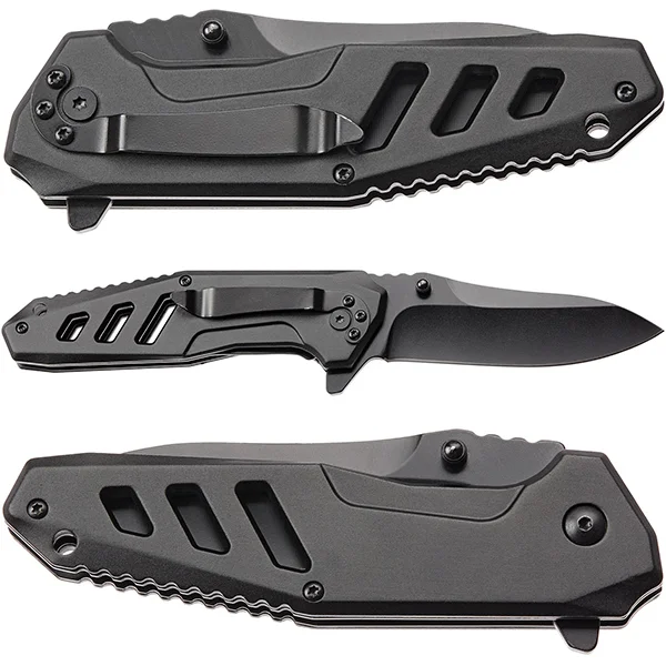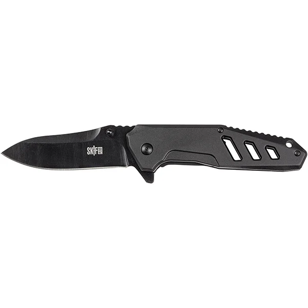 Складаний ніж Skif Plus Space – новинка 2020 року. Модель оформлена повністю чорною, що відповідає її назві - Space. Профіль клинка найближчий до Spear-Point і виконаний з нержавіючої сталі 3Cr13MoV, яка відрізняється високими показниками корозійної стійкості, а також простотою правки ріжучої кромки. Увігнуті спуски починаються з 1/3 від обуха, що в поєднанні з формою клинка забезпечує ножу хороші ріжучі і колючі якості. Фіксація клинка здійснюється замком Liner-Lock, пластина якого має насічку для більш зручного оперування однією рукою. клинка відбувається за допомогою фліппера, а також двостороннього шпенька. На верхній частині клинка є насічка, яка дозволяє надійно утримувати ніж у руці. Накладки на рукоятку виконані з алюмінієвого сплаву. Для полегшення маси виробу в рукояті були зроблені 3 отвори, які вносять свій внесок в оригінальний дизайн ножа. Також є отвір для темляка, а також сталева кліпса для перенесення ножа в положенні Tip-down. Наскрізна конструкція дозволяє легко обслуговувати ніж. Skif Plus Space стане хорошим вибором для щоденного використання в умовах міста.