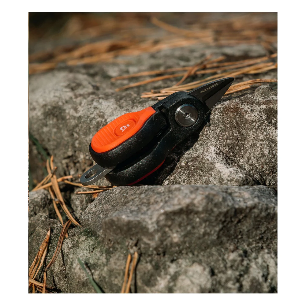 Azura Safina Compact Scissors 65 мм – високоякісні та компактні риболовні ножиці, які призначено для якісного відрізання плетених шнурів та жилок. Леза ножиць виготовлено з нержавіючої сталі з титановим покриттям, завдяки чому інструмент не боїться води, не іржавіє та довго зберігає свою гостроту. Корпус ножиць Azura Safina Compact Scissors виконано з міцного пластику, він має компактні розміри, а його конструкція передбачає можливість кріплення до ретривера чи рибальського спорядження. Ножиці Azura Safina Compact Scissors дають змогу робити рівні акуратні зрізи шнура та інших м'яких матеріалів і без зусиль виконувати операції, пов'язані з виготовленням риболовних оснасток. Крім того, у конструкції інструменту є спеціальний запобіжник, який не дає змоги ножицям самовільно відкриватися у вертикальному положенні, що дуже зручно під час закріплення на ретривері або рибальському спорядженні.