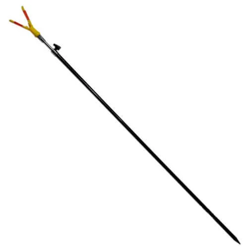 Винятково доступна за ціною телескопічна алюмінієва підставка. Завдяки пластиковому цанговому затиску обрана довжина фіксується надійно. Вістря на кінці підставки дозволяє встромити її навіть у твердий ґрунт. Конструкція підставки дозволяє використовувати її з вудилищами, що мають різну товщину комля. Передбачено проріз для безперешкодного проходу волосіні при встановленому вудлищі.