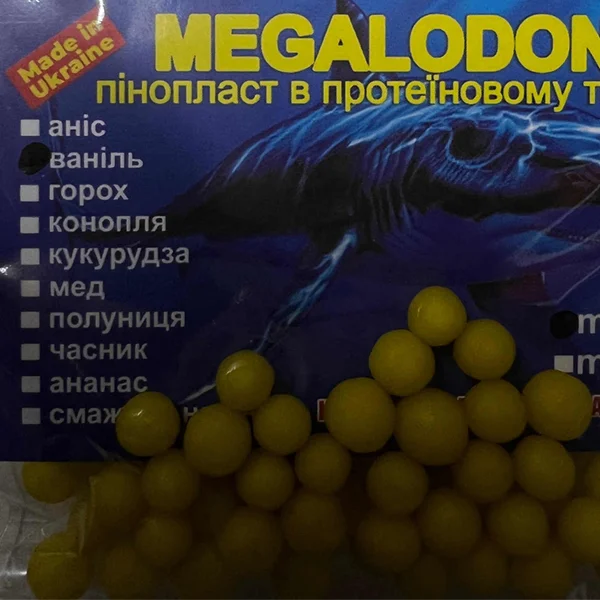 Пінопласт в протеїновому тісті Megalodon поєднує позитивні властивості кульок з пінопласту - хорошу міцність, створює ефект, що палить, і відмінні смакові якості пінотесту, що при грамотному застосуванні дозволяє отримувати кращий результат. Додається впевненість у цілості наживки та збільшується корисне знаходження снасті у воді. Впевнено розуміючи, що насадка на місці і не з'їдена дрібною рибою, можна сміливо чекати на клювання карася або плотви, ляща,коропа. Так як такі насадки часто застосовують на пружинах, сосках, які вимагають не дуже частого перезакидання.