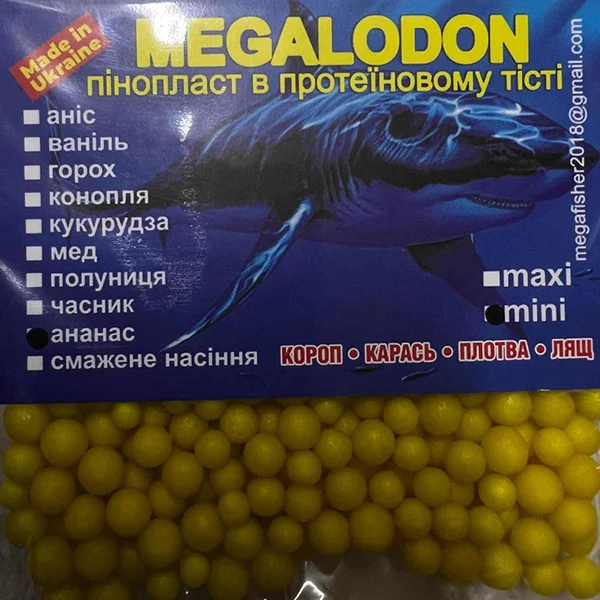 Пінопласт в протеїновому тісті Megalodon поєднує позитивні властивості кульок з пінопласту - хорошу міцність, створює ефект, що палить, і відмінні смакові якості пінотесту, що при грамотному застосуванні дозволяє отримувати кращий результат. Додається впевненість у цілості наживки та збільшується корисне знаходження снасті у воді. Впевнено розуміючи, що насадка на місці і не з'їдена дрібною рибою, можна сміливо чекати на клювання карася або плотви, ляща,коропа. Так як такі насадки часто застосовують на пружинах, сосках, які вимагають не дуже частого перезакидання.