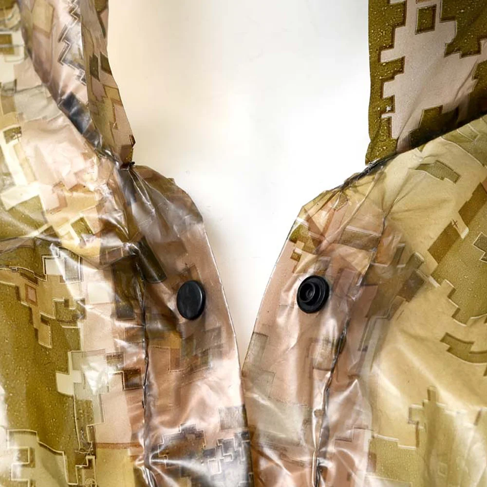 Матеріал: поліетилен високої якості Колір: піксель Застібка: пластикові кнопки Розмір: 62-64 Упаковка: поліетиленовий пакет із застібкою