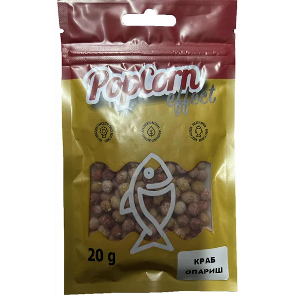 Універсальна плаваюча насадка PopCorn Effect представляє собою ароматизовані кульки тіста, на 100% складаються з натуральних компонентів. Ідеально підходять для лову багатьох видів мирної риби на будь-якому типі водойми. * Насадка містить активатор клювання * Довго не розмивається у воді, міцно тримається на гачку * Порошить, при розчиненні виділяє поживні речовини * Працює самостійно з різними видами насадок